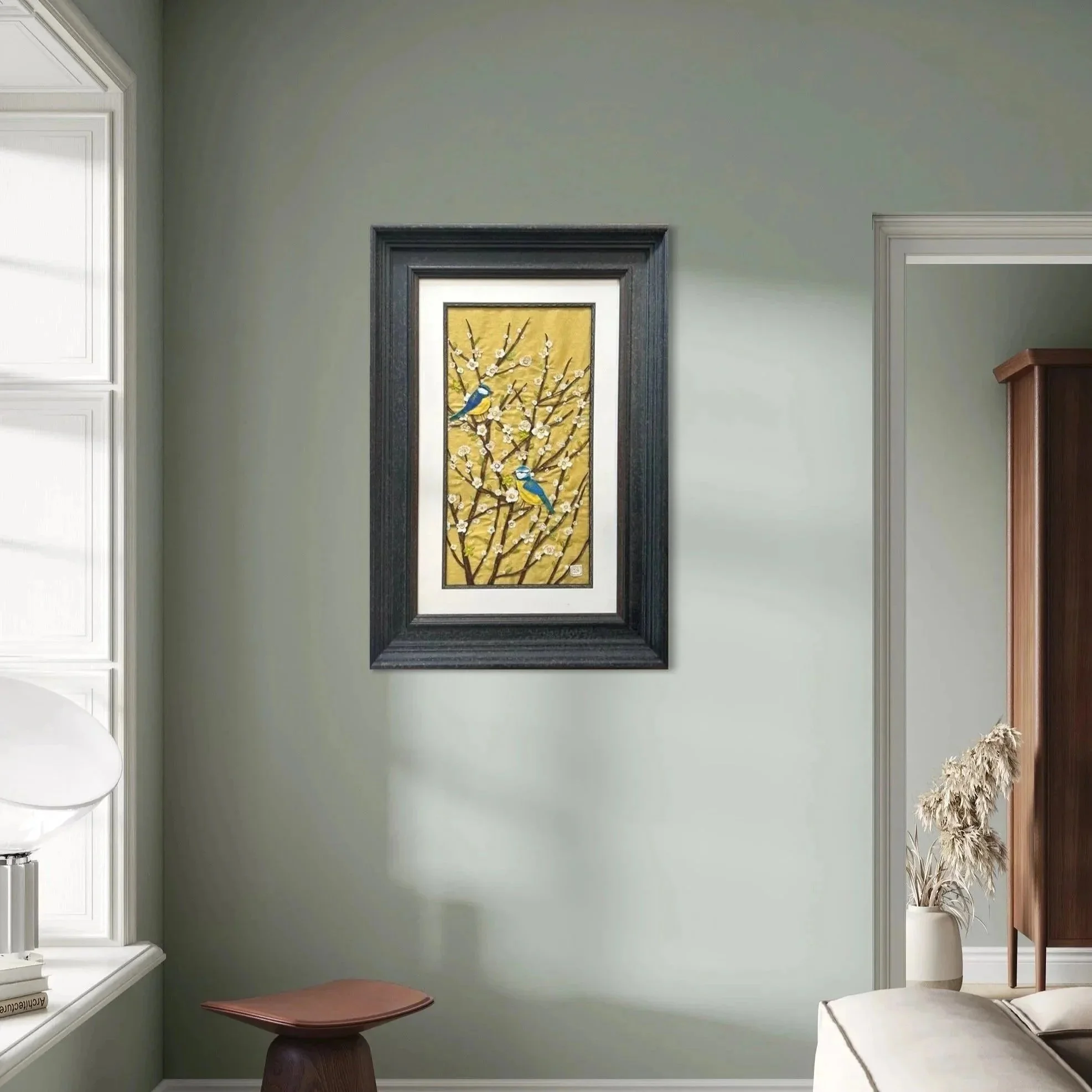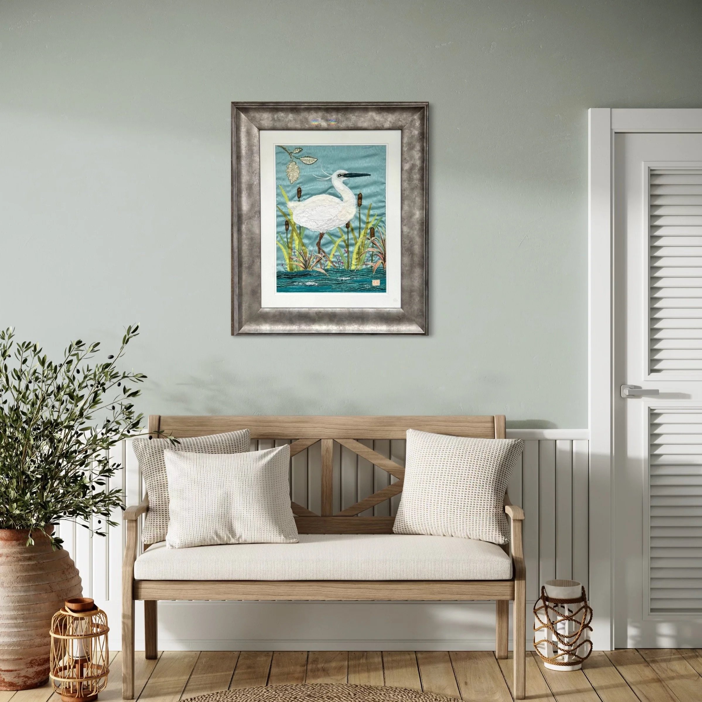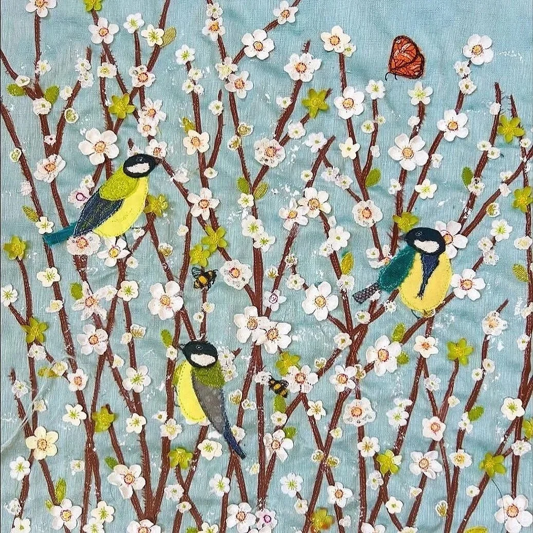 I create contemporary textile artworks shaped by the beautiful landscape around me. My current work explores colour, texture, and quiet narrative — warm, intricate pieces that invite a closer look.