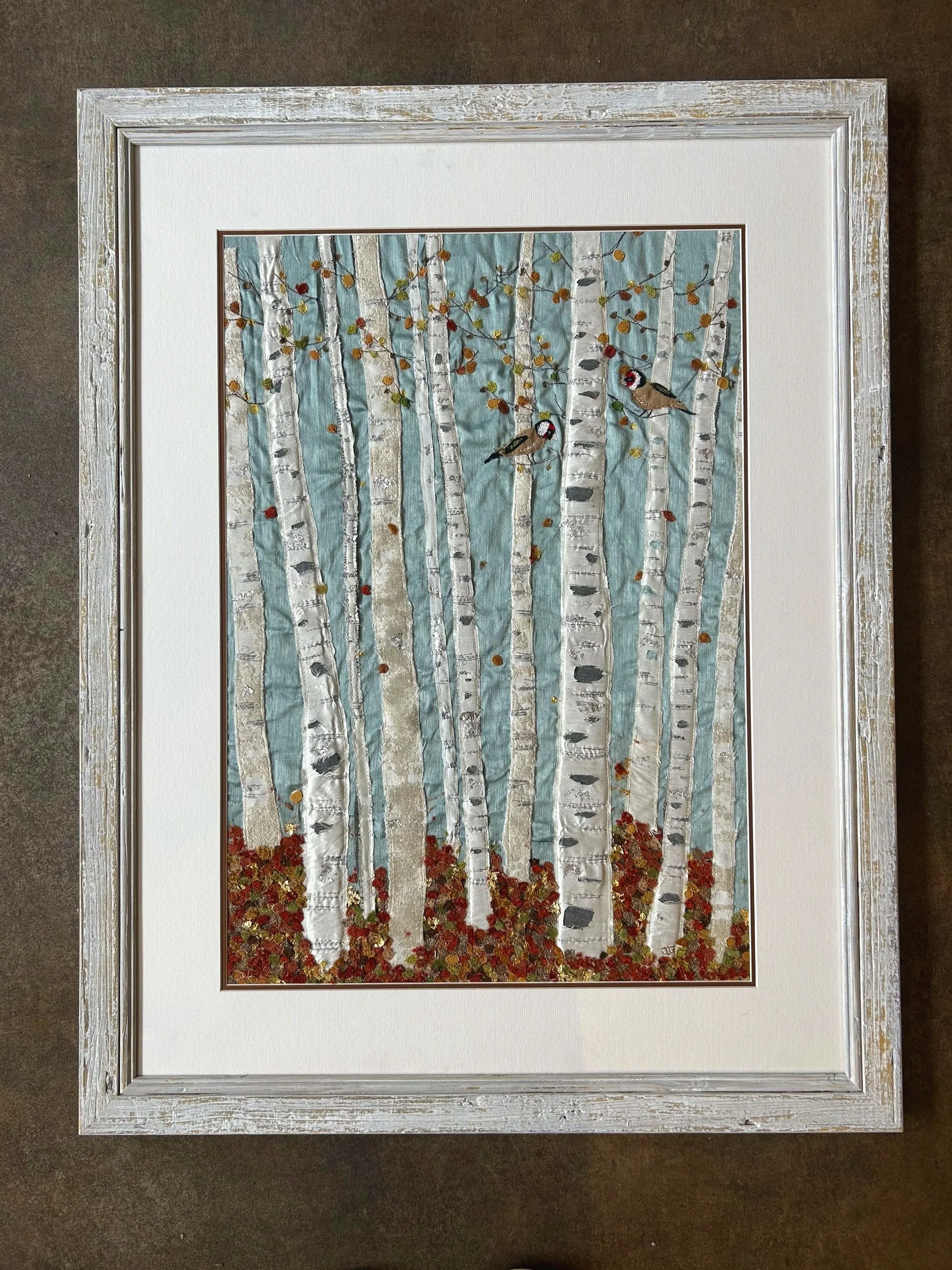 ‘Autumn Birch’. I love creating silver birch woods. This is the first one featuring a pair of handsome goldfinches.