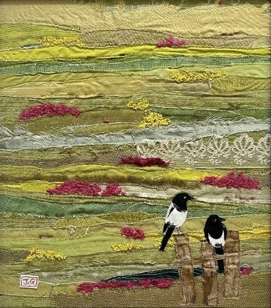 ‘Two For Joy’. A couple of inquisitive magpies perched on a moorland fence.