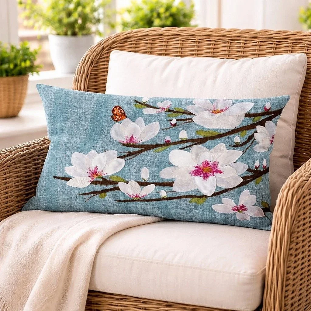 ‘Magnolia Sky’ is one of the new oblong accent cushions - I’ve been very excited about getting these! Another quintessentially spring flower, with beautiful colours that complement and enhance many different decor styles.
