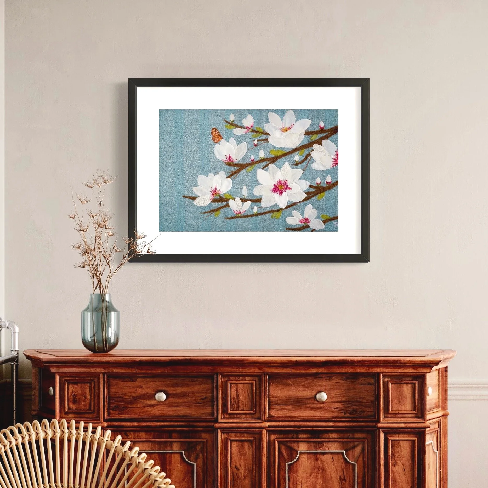 A fine art reproduction of an original textile artwork.